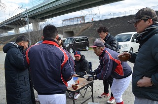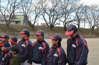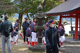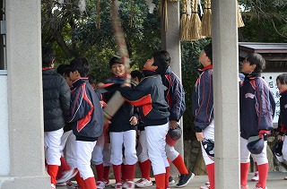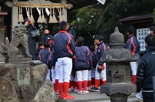 一年間の無事故・必勝を願ってグランド清め式をしました。