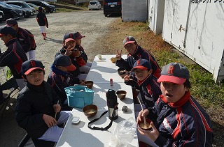 その後は、母達が作った温か〜い豚汁をみんなでいただきました(*^◯^*)