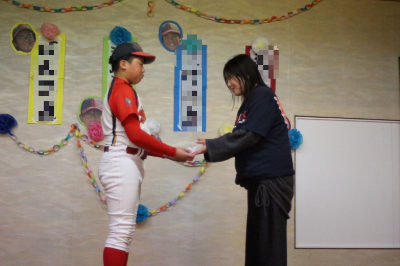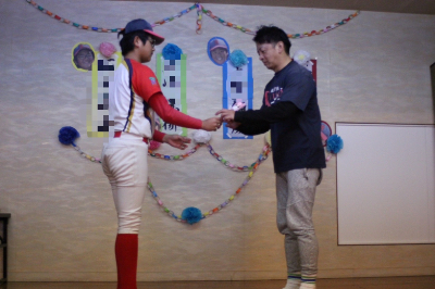 前監督・コーチへプレゼントを感謝の気持ちをこめて渡します。