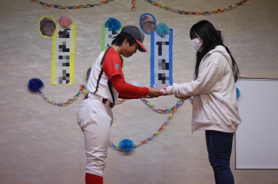5年生の開会の挨拶からはじまり、前監督より卒部証書・記念品を授与されました。